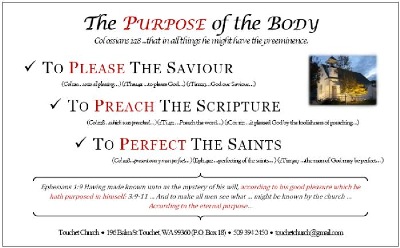 Close: The proposed purpose of this body is The Pleasing of the Saviour, The Preaching of the Scripture, and The Perfecting of the Saints.